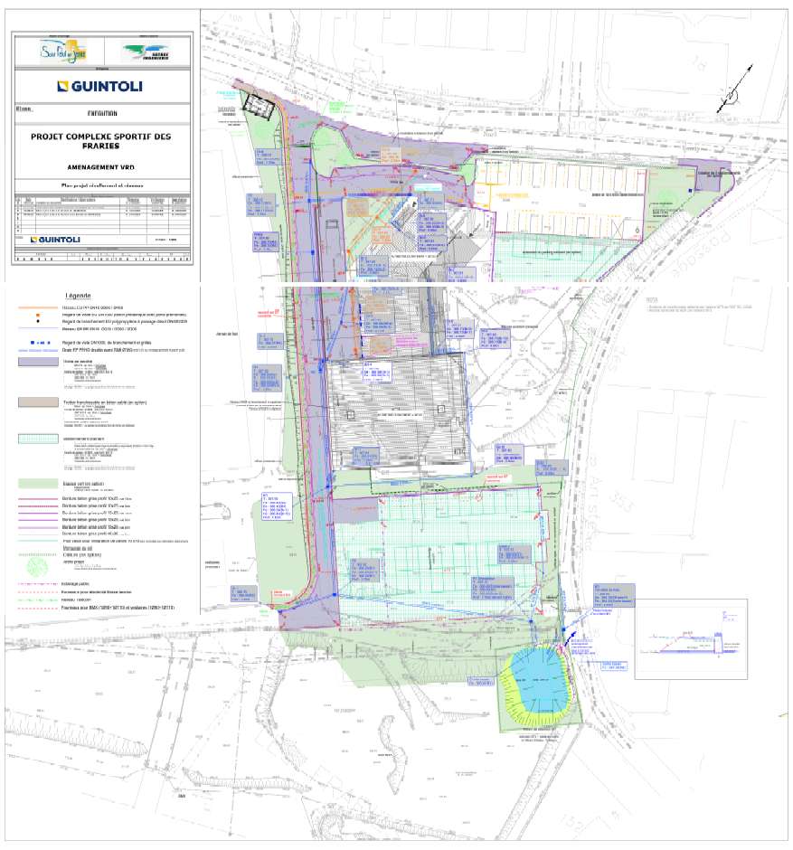 - Réseaux télécom, eau pluviale (170ml), assainissement (30ml), eau potable (30ml)